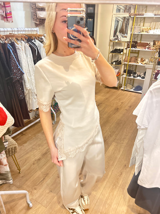 WHITE WIDE LEG WAFFLE TROUSER