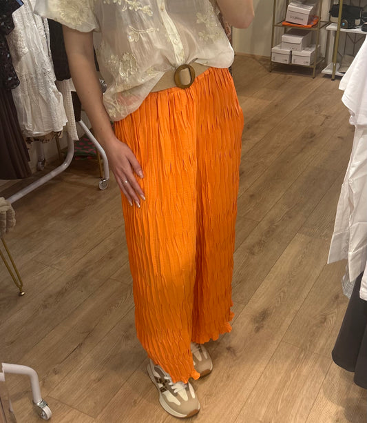 ORANGE BELTED CRINKLE TROUSER