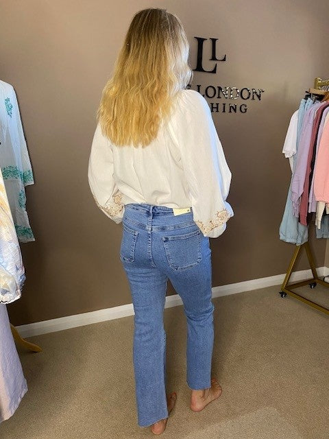 FLOWER EMBROIDERED CREAM BLOUSE