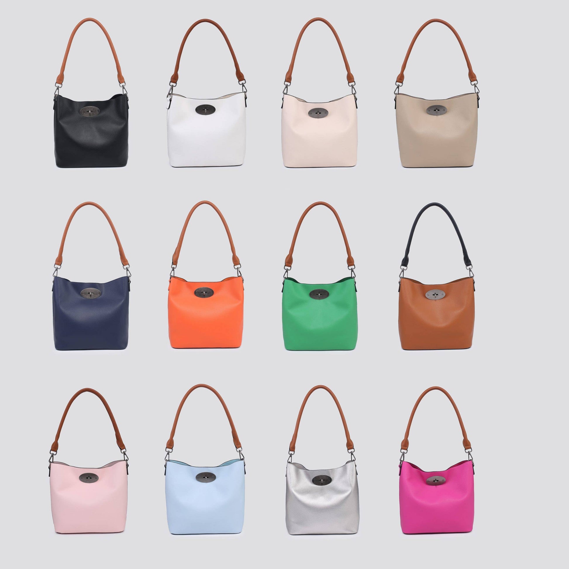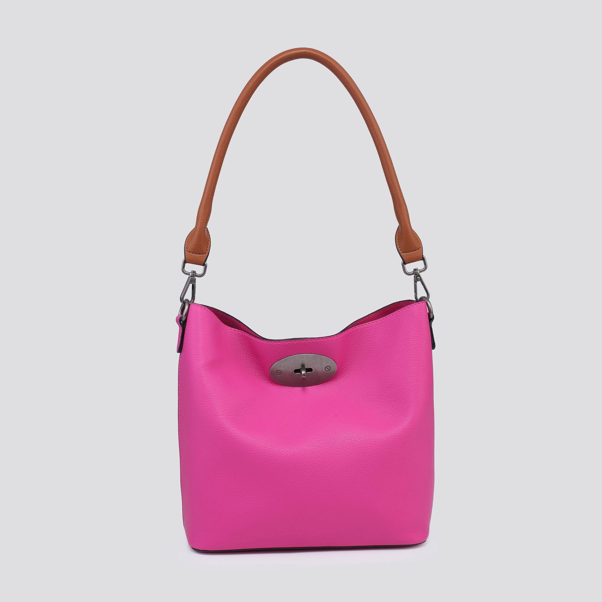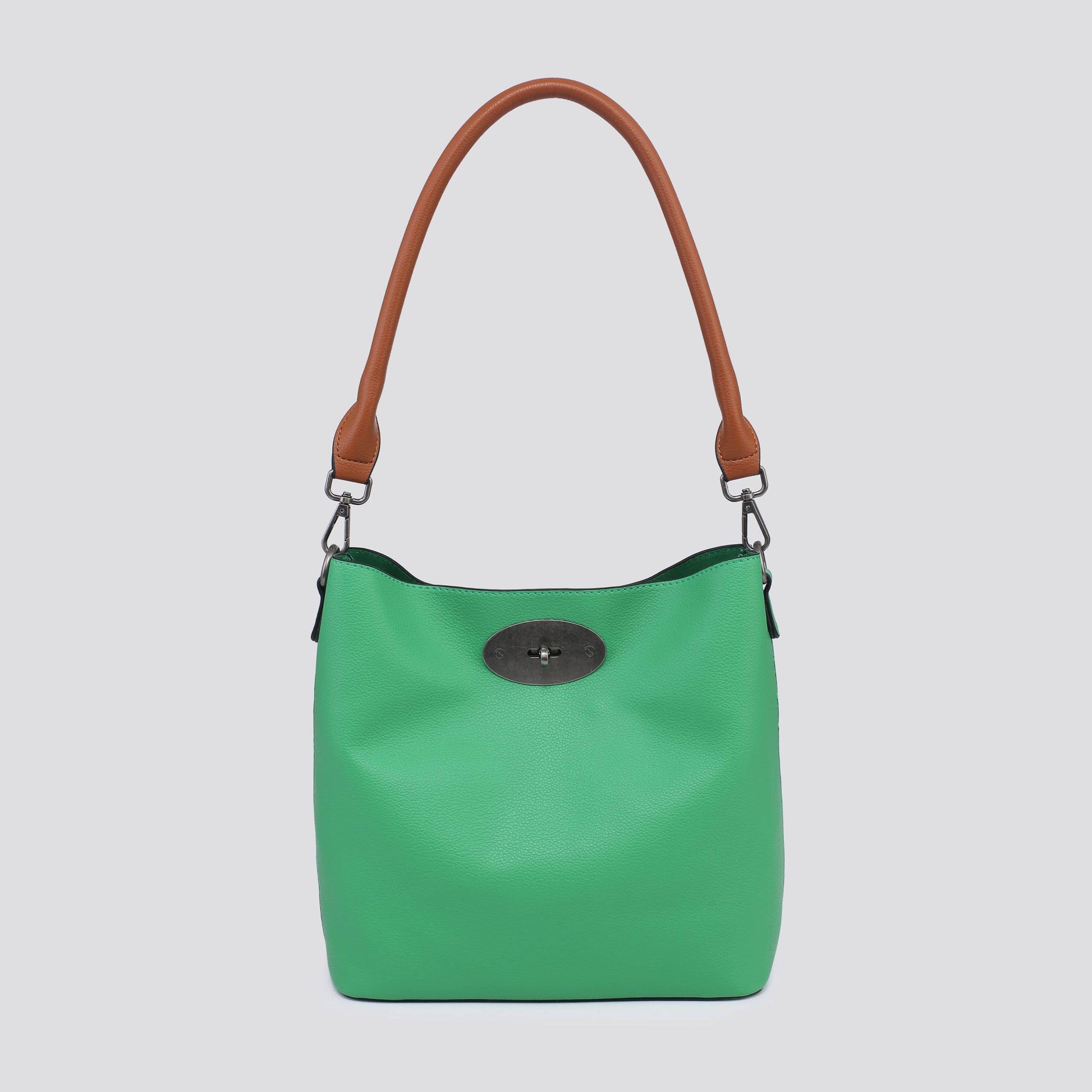 Faux leather shoulder bag with contrast handle and inside zip compartment