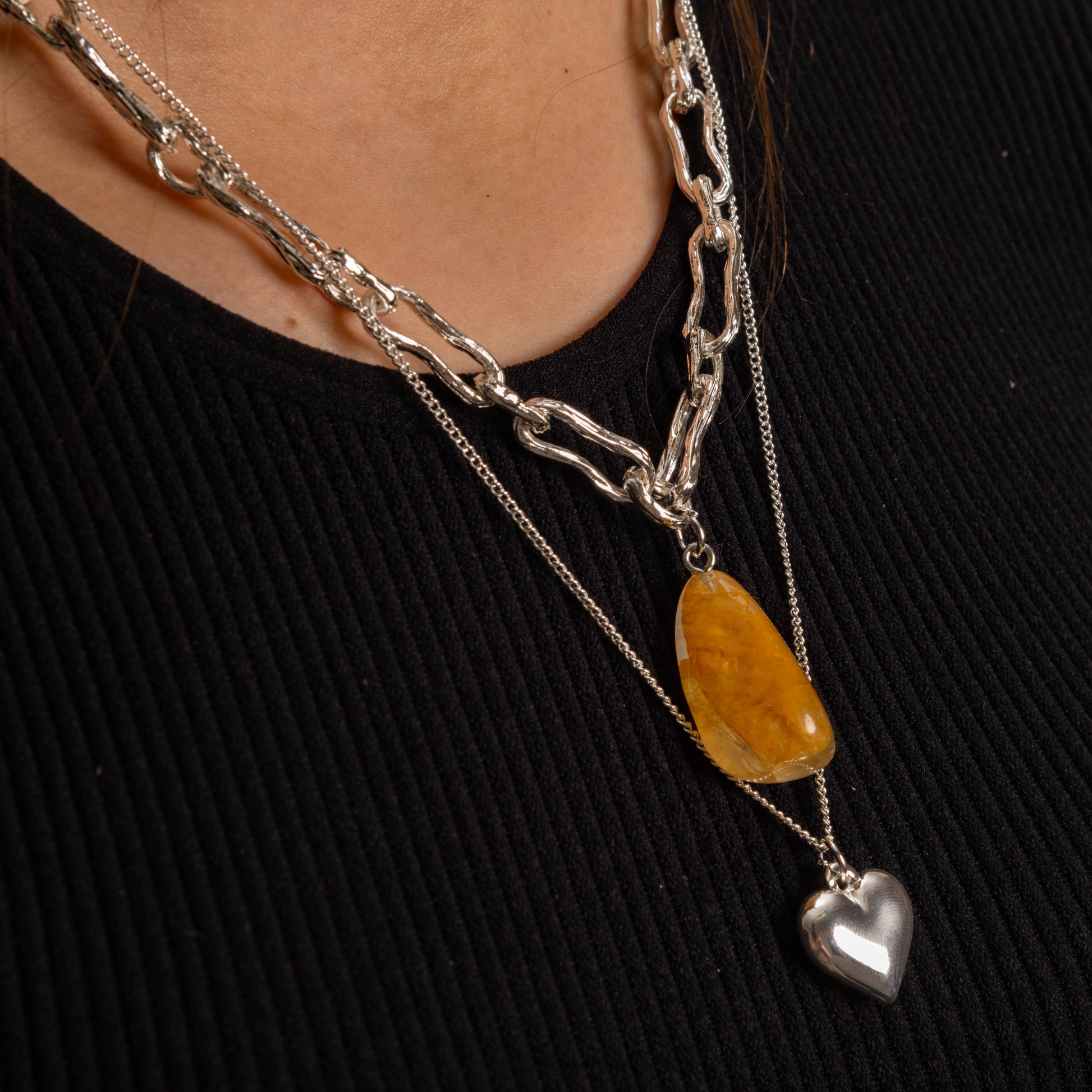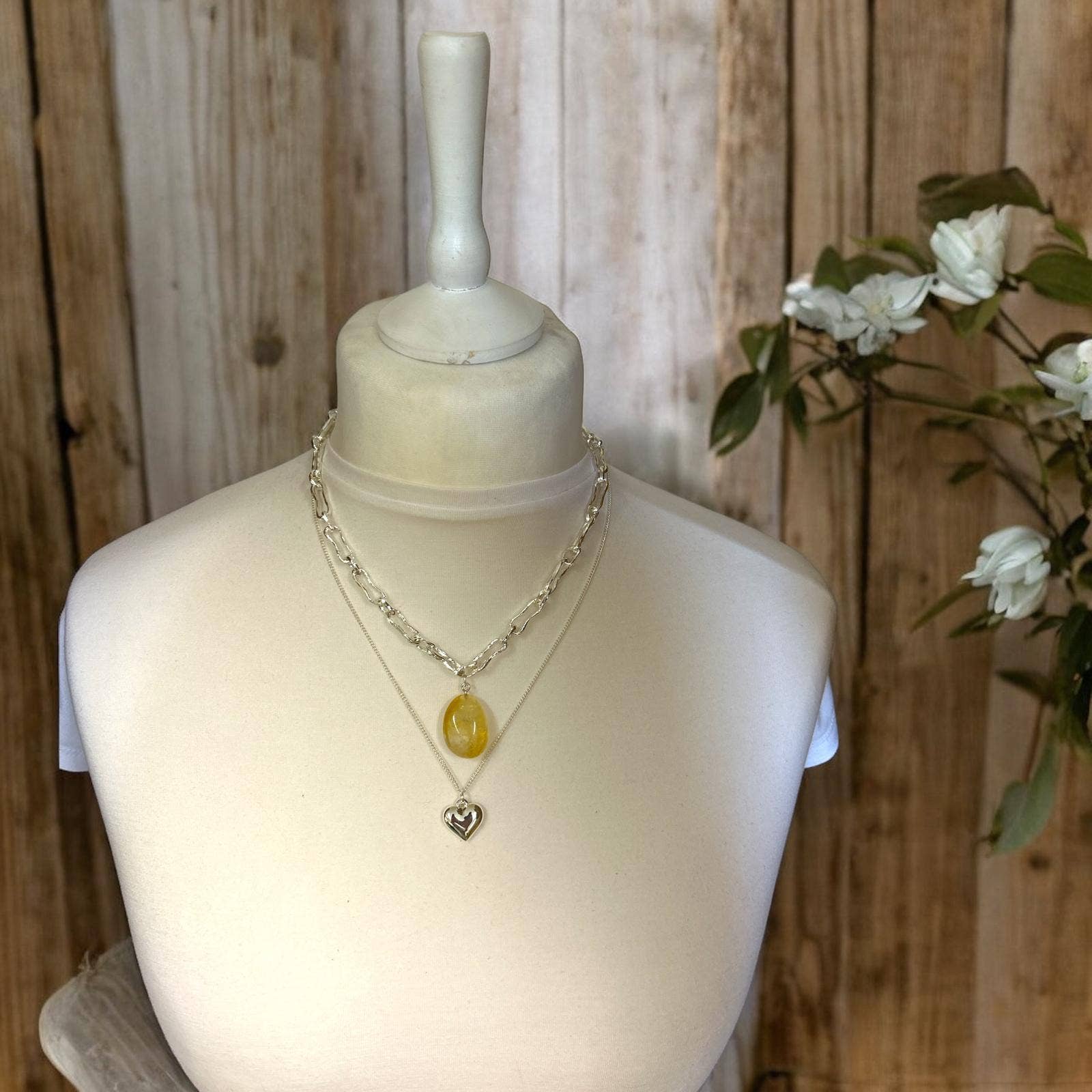Elegant Layered Necklace in silver- with Aragonite stone pendant
