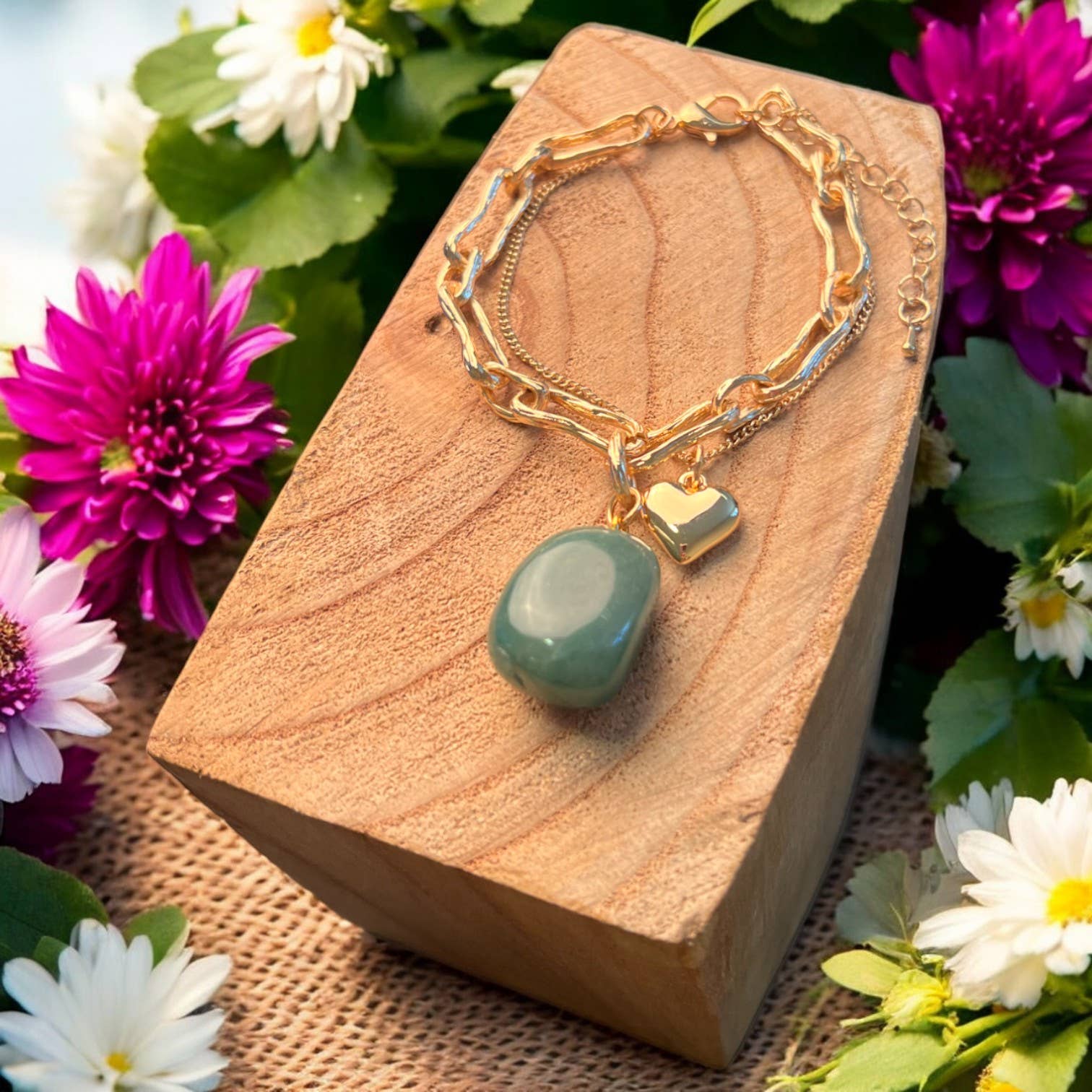 Layered Bracelet in gold with Emerald coloured stone BR232GG